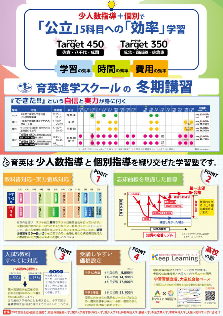 2025年12月の育英 気づけば朝晩、息が白くなる季節になりました。 冬の寒さと共にあわただしい年末がせまって参りましたが、今月中旬からは冬期講習もスタートします。 時間をかけられる集中した時間の中で、今年の復習や来年に向けた土台作り、中学3年生はラストスパート、それぞれの課題に取り組んで参り...